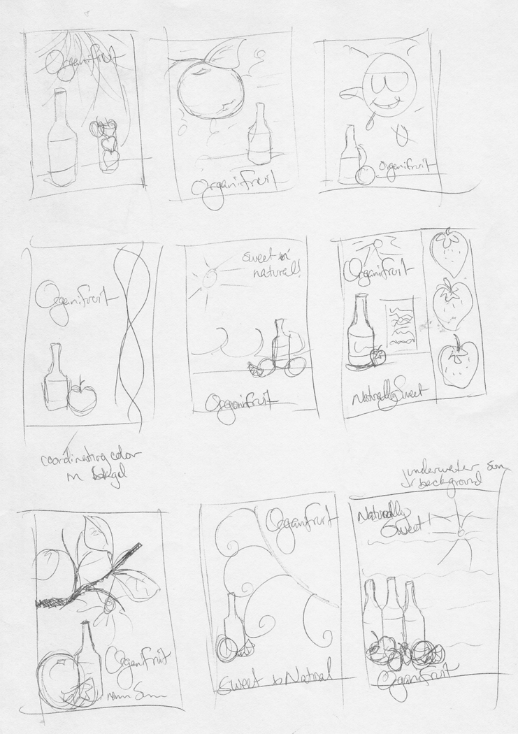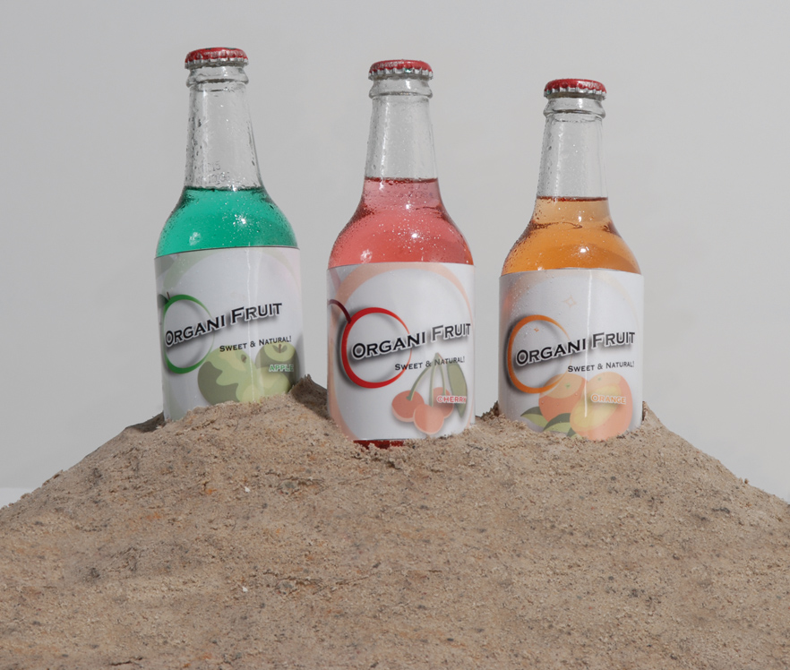 The bottled beverage ad was meant to give students experience in managing a product photo shoot. Starting with designing a logo and a slogan. We were given the option to create a new name or use the name Fruitive. While planning, my beverage evolved into OrganiFruit.